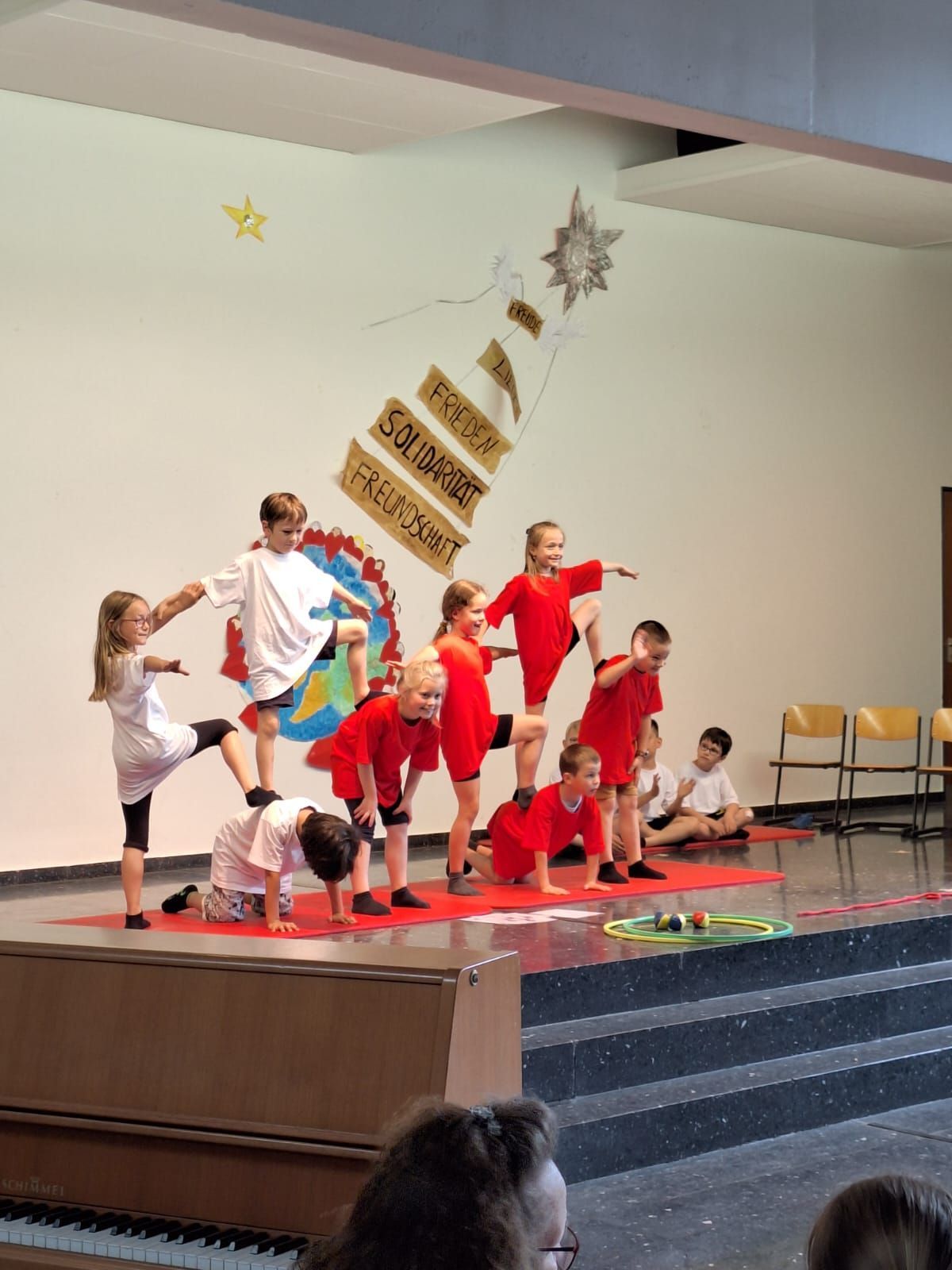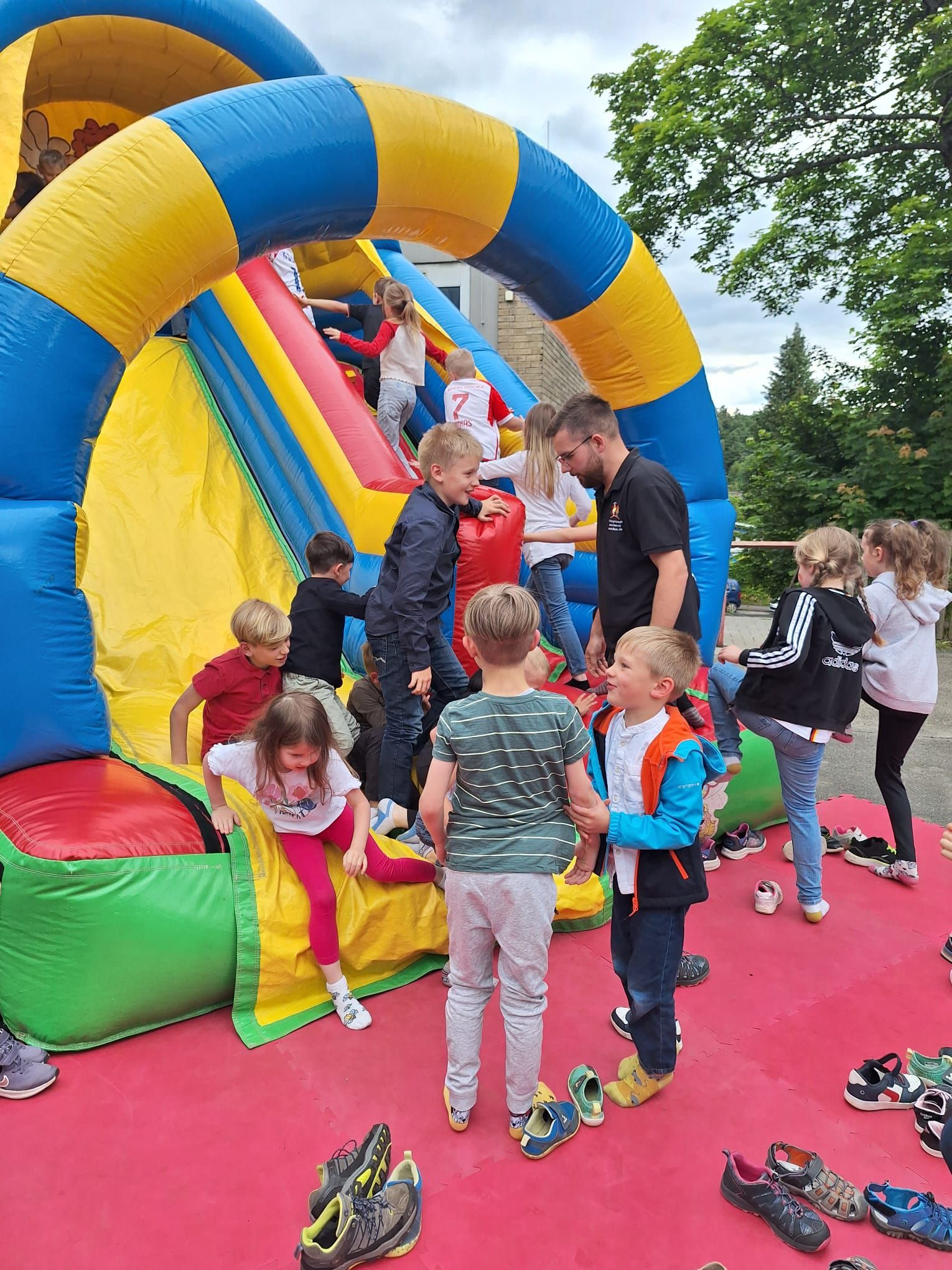 Ein bunter Spaß aus Sport, Spiel und besonderen Attraktionen wurde den Schülerinnen und Schülern der Grundschule Walkenried, allen Eltern und Gästen beim diesjährigen Sommerfest geboten: Nach dem Programm mit Musik, Tanz und Akrobatik lud der Förderverein der Grundschule Walkenried zu Kaffee und Kuchen, später auch zu Würstchen im Brötchen ein, bei dem der neu erworbene Gasgrill der Grundschule zum Einsatz kam. Während der Darbietung der Kinder wurden einige Überraschungen auf dem Schulhof der Grundschule aufgebaut: Mit dabei waren eine Hüpfburg, Bullenreiten, Wasserspiele, angeleitet von der Feuerwehr Walkenried, Federball, Fußball, Basteln und Kinderschminken. Bei bestem Wetter war somit für einen rundum gelungenen Nachmittag gesorgt!
