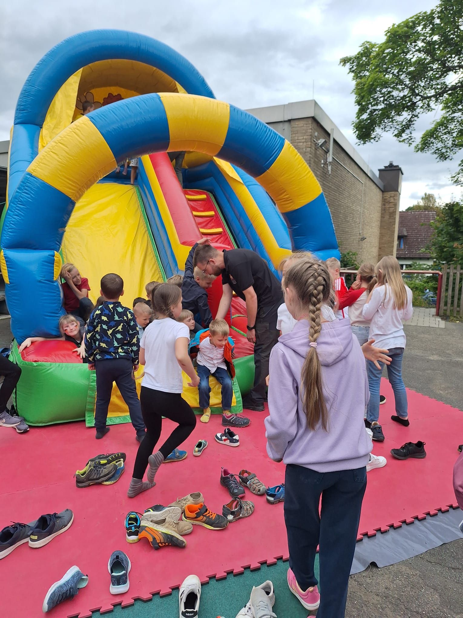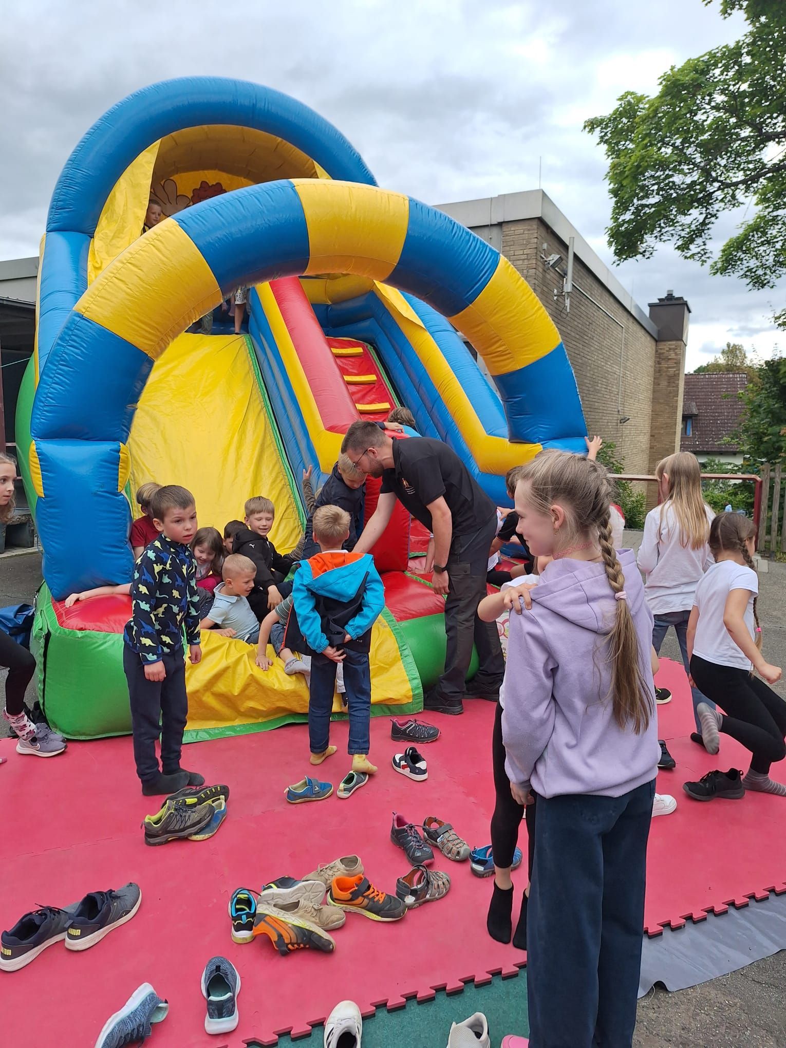 Ein bunter Spaß aus Sport, Spiel und besonderen Attraktionen wurde den Schülerinnen und Schülern der Grundschule Walkenried, allen Eltern und Gästen beim diesjährigen Sommerfest geboten: Nach dem Programm mit Musik, Tanz und Akrobatik lud der Förderverein der Grundschule Walkenried zu Kaffee und Kuchen, später auch zu Würstchen im Brötchen ein, bei dem der neu erworbene Gasgrill der Grundschule zum Einsatz kam. Während der Darbietung der Kinder wurden einige Überraschungen auf dem Schulhof der Grundschule aufgebaut: Mit dabei waren eine Hüpfburg, Bullenreiten, Wasserspiele, angeleitet von der Feuerwehr Walkenried, Federball, Fußball, Basteln und Kinderschminken. Bei bestem Wetter war somit für einen rundum gelungenen Nachmittag gesorgt!