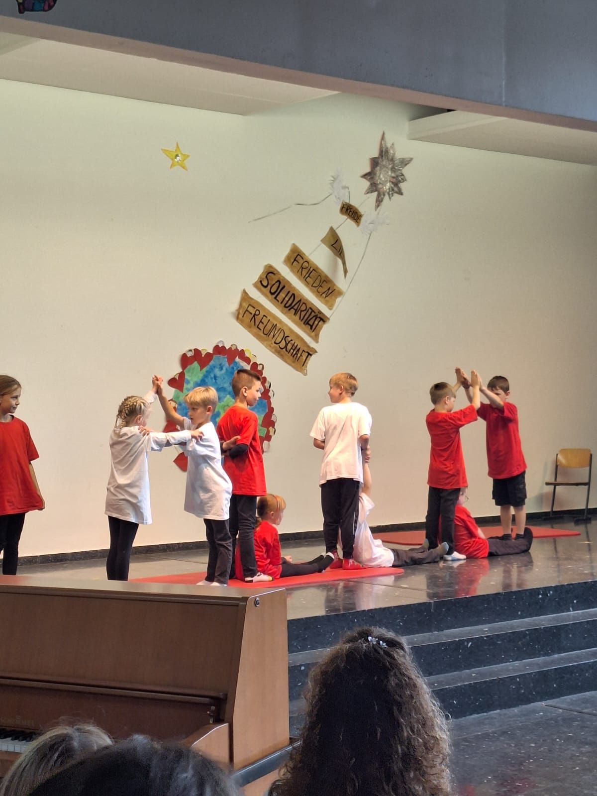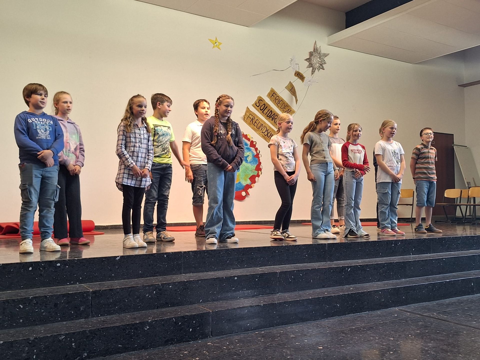 Mit Plakat, Buch und Notizen zum Autor, dem Verlag, Erscheinungsjahr, Vorstellung der Hauptfiguren und einer kurzen Inhaltsangabe erschienen am 6. März 2024 die Gewinnerinnen und Gewinner der Klassen 3 und 4 zum jährlichen Vorlesewettbewerb der Grundschule Walkenried. Alle Teilnehmenden überzeugten mit einer spannenden Hinführung und ihrem vorbereiteten Textauszug aus ihrer Buchpräsentation. Auch das durch Herrn Rose vom Buchhaus Thalia aus Nordhausen ausgesuchtem Buch für das Vorlesen eines unbekannten Textes, meisterten die begeisterten LeserInnen mit Bravour. Die Betonung der wörtlichen Rede und das Vorlesen mit verstellten Stimmen gelang den Teilnehmenden so gut, dass Herr Rose, der von vielen verschiedenen Schulen als Jurymitglied eingeladen wird, beeindruckt die Lesekompetenz der besten VorleserInnen der Grundschule Walkenried lobte. Herzlichen Glückwunsch an alle Teilnehmenden und weiterhin viel Spaß beim Lesen mit den vom Buchhaus Thalia gestifteten Buchpreisen!